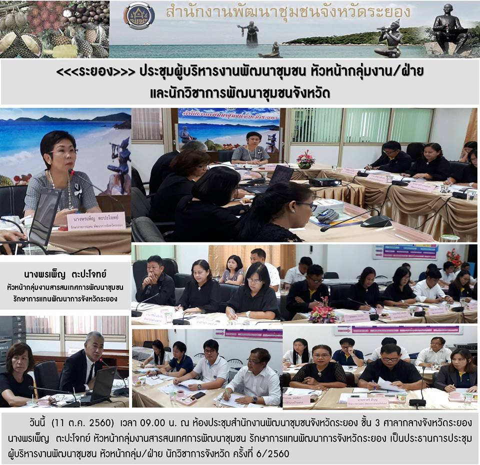 11 ต.ค.60 ประชุมผู้บริหารงานพัฒนาชุมชน หัวหน้ากลุ่ม/ฝ่าย นักวิชาการพัฒนาชุมชนจังหวัด ครั้งที่ 6/2560 24 พฤศจิกายน 60 / 13.42 น. (Visited 1 times, 1 visits today)Facebook iconFacebookTwitter iconTwitterLINE iconLine