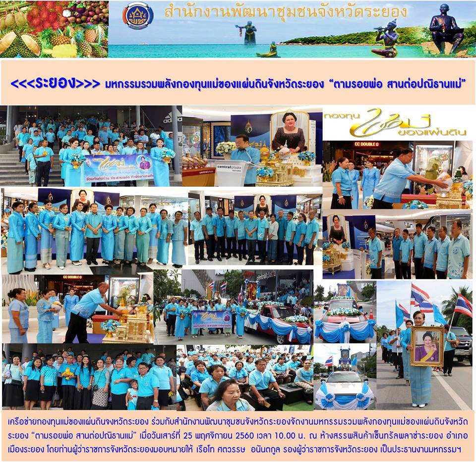 25 พ.ย.60 จัดมหกรรมรวมพลังกองทุนแม่ของแผ่นดินจังหวัดระยอง “ตามรอยพ่อ สานต่อปณิธานแม่”