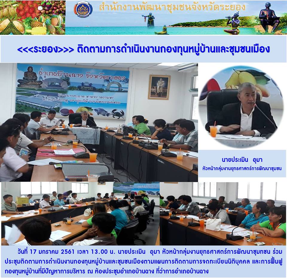 17 มกราคม 2561 เวลา 13.00 น. นายประเมิน อุมา หัวหน้ากลุ่มงานยุทธศาสตร์การพัฒนาชุมชน ติดตามการดำเนินงานกองทุนหมู่บ้านและชุมชนเมือง 23 มกราคม 61 / 20.01 น. (Visited 1 times, 1 visits today)Facebook iconFacebookTwitter iconTwitterLINE iconLine