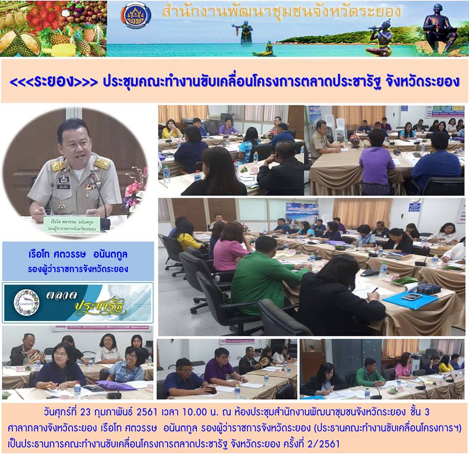 23 กุมภาพันธ์ 2561 ประชุมคณะทำงานขับเคลื่อนโครงการตลาดประชารัฐ จังหวัดระยอง 25 กุมภาพันธ์ 61 / 19.58 น. (Visited 1 times, 1 visits today)Facebook iconFacebookTwitter iconTwitterLINE iconLine
