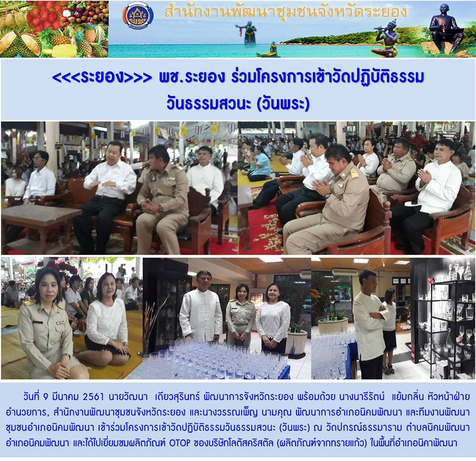 9 มีนาคม 2561 พช.ระยอง ร่วมโครงการเข้าวัดปฏิบัติธรรมวันธรรมสวนะ (วันพระ) 10 มีนาคม 61 / 17.31 น. (Visited 1 times, 1 visits today)Facebook iconFacebookTwitter iconTwitterLINE iconLine