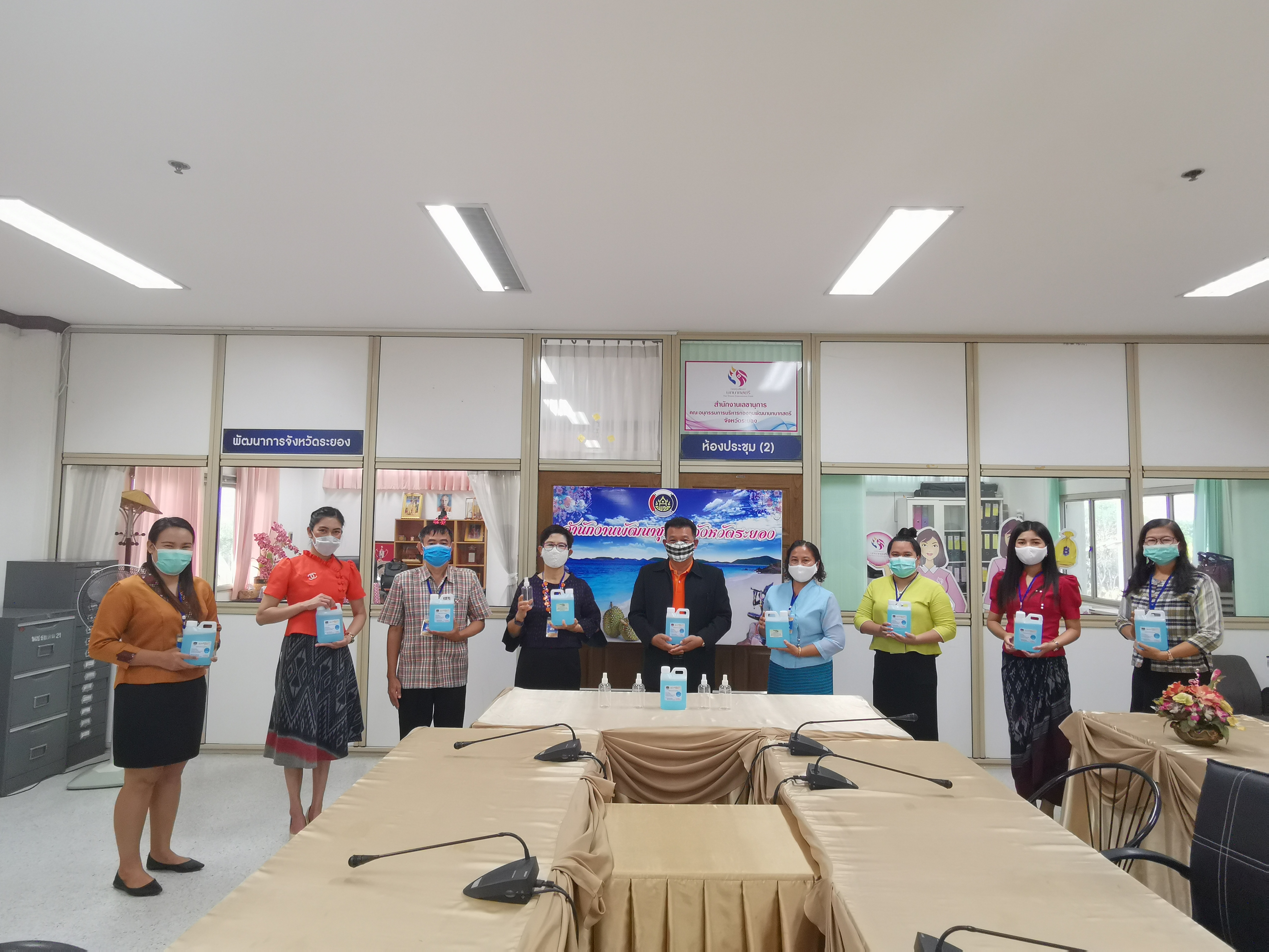 >> นายพิศ นันทพูนพิพัฒน์ พัฒนาการจังหวัดระยอง พร้อมด้วยหัวหน้ากลุ่ม/ฝ่าย และเจ้าหน้าที่พัฒนาชุมชน รับมอบผลิตภัณฑ์ทำความสะอาด Ethyl Alcohol 72% ซึ่งกรมการพัฒนาชุมชนได้ส่งมอบให้สำนักงานพัฒนาชุมชนจังหวัดและอำเภอ เพื่อใช้ในการทำความสะอาดอุปกรณ์เครื่องใช้ในสำนักงาน และป้องกันการแพร่กระจายของเชื้อไวรัสโคโรนา 2019 (COVID-19) ??