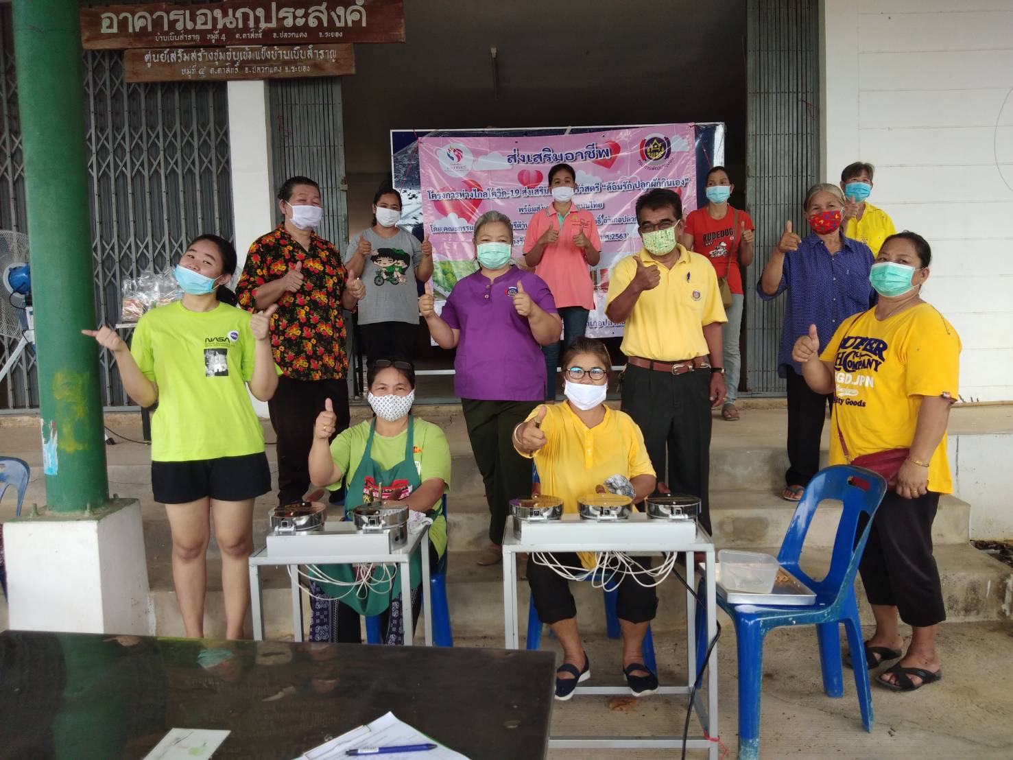 ?>> นายกมล  ปาลา พัฒนาการอำเภอปลวกแดง พร้อมด้วยทีมงาน ให้การสนับสนุนเงินอุดหนุน กองทุนพัฒนาบทบาทสตรี (ทุนให้เปล่า) เพื่อส่งเสริมอาชีพ แก่คณะกรรมการพัฒนาสตรีตำบลตาสิทธิ์ ในโครงการห่างไกลโควิด-19 ส่งเสริมครอบครัวสตรี “ล้อมรัก ปลูกผักกินเอง” โดยโครงการดังกล่าวเป็นการส่งเสริมการทำอาชีพขนมไทย ได้แก่ ขนมทองม้วน/ขนมบ้าบิ่น/ขนมถั่วแปบ และน้ำสมุนไพร โดยเน้นใช้วัตถุดิบในชุมชน และยังเป็นการเพิ่มมูลค่าของวัตถุดิบในชุมชน ซึ่งเป็นการสร้างงาน สร้างอาชีพ ได้อย่างมั่นคง มั่งคั่ง ยั่งยืน ของครอบครัวสตรีไทย   ?