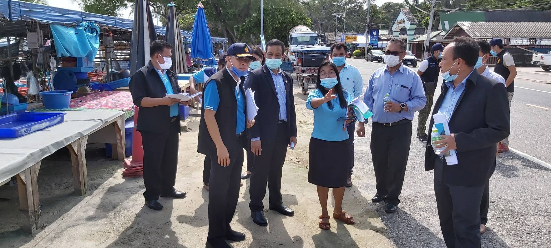 》》》ว่าที่ร้อยตรี พิรุณ เหมรักษ์ รองผู้ว่าราชการจังหวัดระยอง นำส่วนราชการที่เกี่ยวข้อง อาทิเช่น นายสุพจน์ ต่ออาจหาญ นายอำเภอเมืองระยอง นานพิศ นันทพูนพิพัฒน์ พัฒนาการจังหวัดระยอง นายไพรัตน์ อรุณเวสสะเศรษฐ นายกเทศมนตรีตำบลบ้านเพ ประมงจังหวัดระยอง ตรวจเยี่ยม และเตรียมความพร้อมต้อนรับนายกรัฐมนตรีและคณะ ในการเยี่ยมชมกิจกรรมของบริษัทประชารัฐ รักสามัคคีระยอง (วิสาหกิจเพื่อสังคม) จำกัด และผลิตภัณฑ์สินค้าชุมชน ในวันที่ 24 สิงหาคม 2563 ณ ตลาดร้อยเสา และตรวจเยี่ยมกลุ่มประมงเรือเล็กพื้นบ้านสวนสน หาดสวนสน อำเภอเมืองระยอง จังหวัดระยอง ?>>