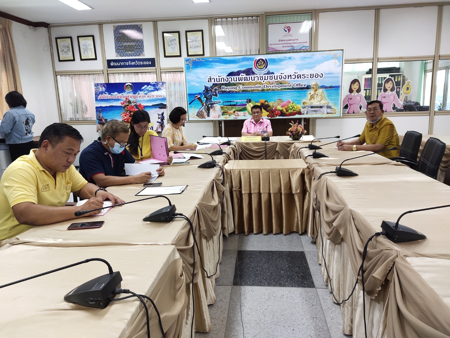 ??>> วันจันทร์ที่ 10 พฤศจิกายน 2563 เวลา 14.00 น. ณ ห้องประชุมสำนักงานพัฒนาชุมชนจังหวัดระยอง ชั้น 3 ศาลากลางจังหวัดระยอง >> นายพิศ นันทพูนพิพัฒน์ พัฒนาการจังหวัดระยอง พร้อมด้วย ผู้อำนวยการกลุ่มงานฯ ทุกกลุ่มงาน นักวิชาการสำนักงานพัฒนาชุมชนจังหวัดระยอง ร่วมรับฟังการประชุมชี้แจงแนวทางการรับสมัครคัดเลือกบุคคลเพื่อจัดจ้างเป็นลูกจ้างเหมาบริการปฏิบัติภารกิจ ตามโครงการพัฒนาพื้นที่ต้นแบบการพัฒนาคุณภาพชีวิต ตามหลักทฤษฎีใหม่ ประยุกต์สู่ “โคก หนอง นา โมเดล” ผ่านระบบวีดิทัศน์ทางไกล (Video Conference) โดยถ่ายทอดสดจาก ห้องประชุม Warroom ชั้น 5 กรมการพัฒนาชุมชน >>> ในการนี้ ได้มอบหมายให้พัฒนาการอำเภอ และนักวิชาการ สำนักงานพัฒนาชุมชนอำเภอทุกอำเภอ ร่วมรับฟังการประชุมดังกล่าว ผ่านระบบวีดิทัศน์ทางไกล (Video Conference) ณ ที่ตั้งสำนักงานพัฒนาชุมชนอำเภอ?? เศรษฐกิจฐานรากมั่นคงและชุมชนพึ่งตนเองได้ ภายในปี 2565 ? ?
