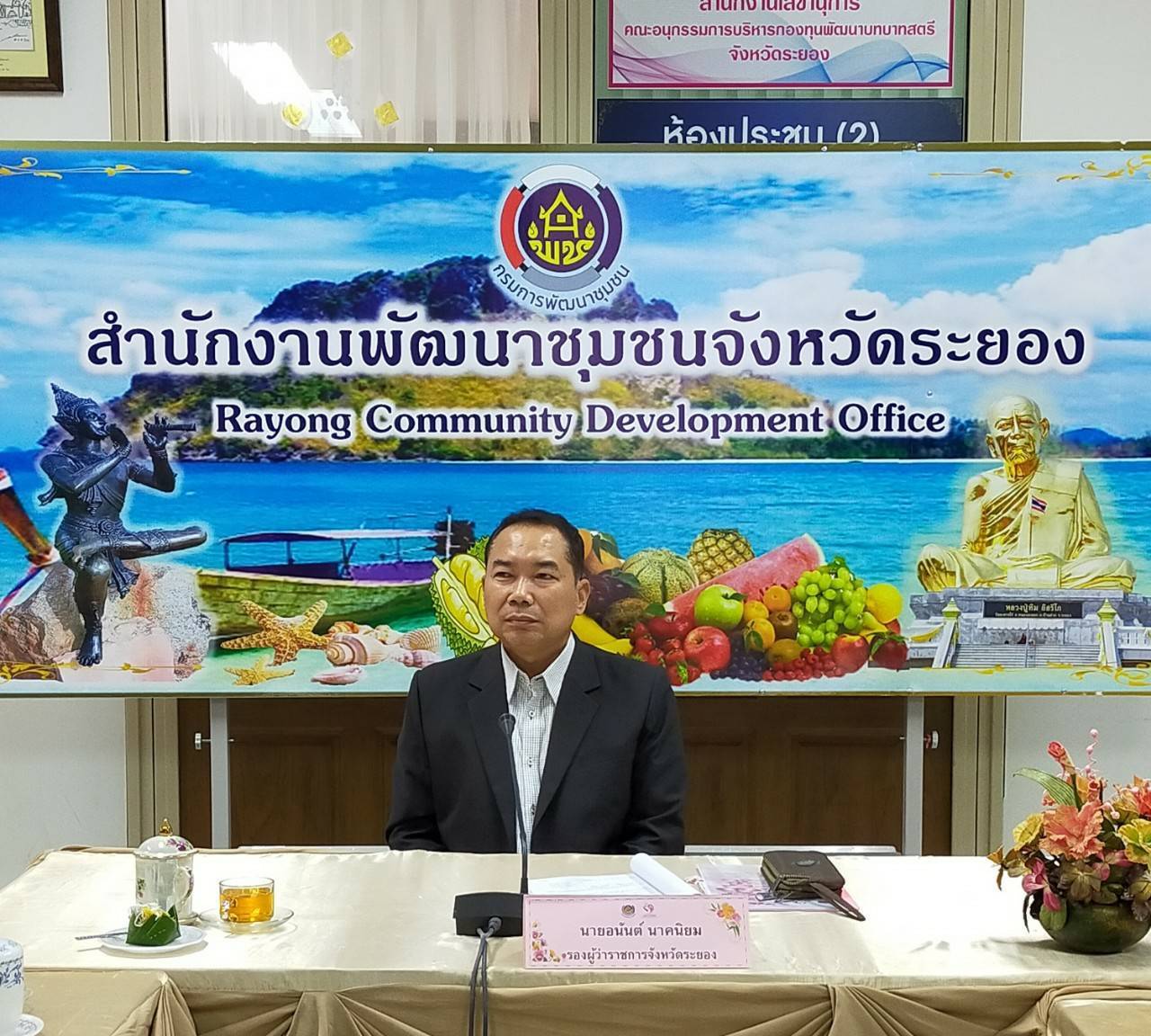 ? นายชาญนะ เอี่ยมแสง ผู้ว่าราชการจังหวัดระยอง (ประธานคณะอนุกรรมการบริหารกองทุนพัฒนาบทสตรี จังหวัดระยอง) มอบหมายนายอนันต์ นาคนิยม รองผู้ว่าราชการจังหวัดระยอง เป็นประธานการประชุมคณะอนุกรรมการบริหารกองทุนพัฒนาบทสตรี ครั้งที่ 2 ปีงบประมาณ พ.ศ. 2564 ในวันศุกร์ที่ 4 ธันวาคม 2563 เวลา 09.30 น. ณ ห้องประชุมสำนักงานพัฒนาชุมชนจังหวัดระยอง