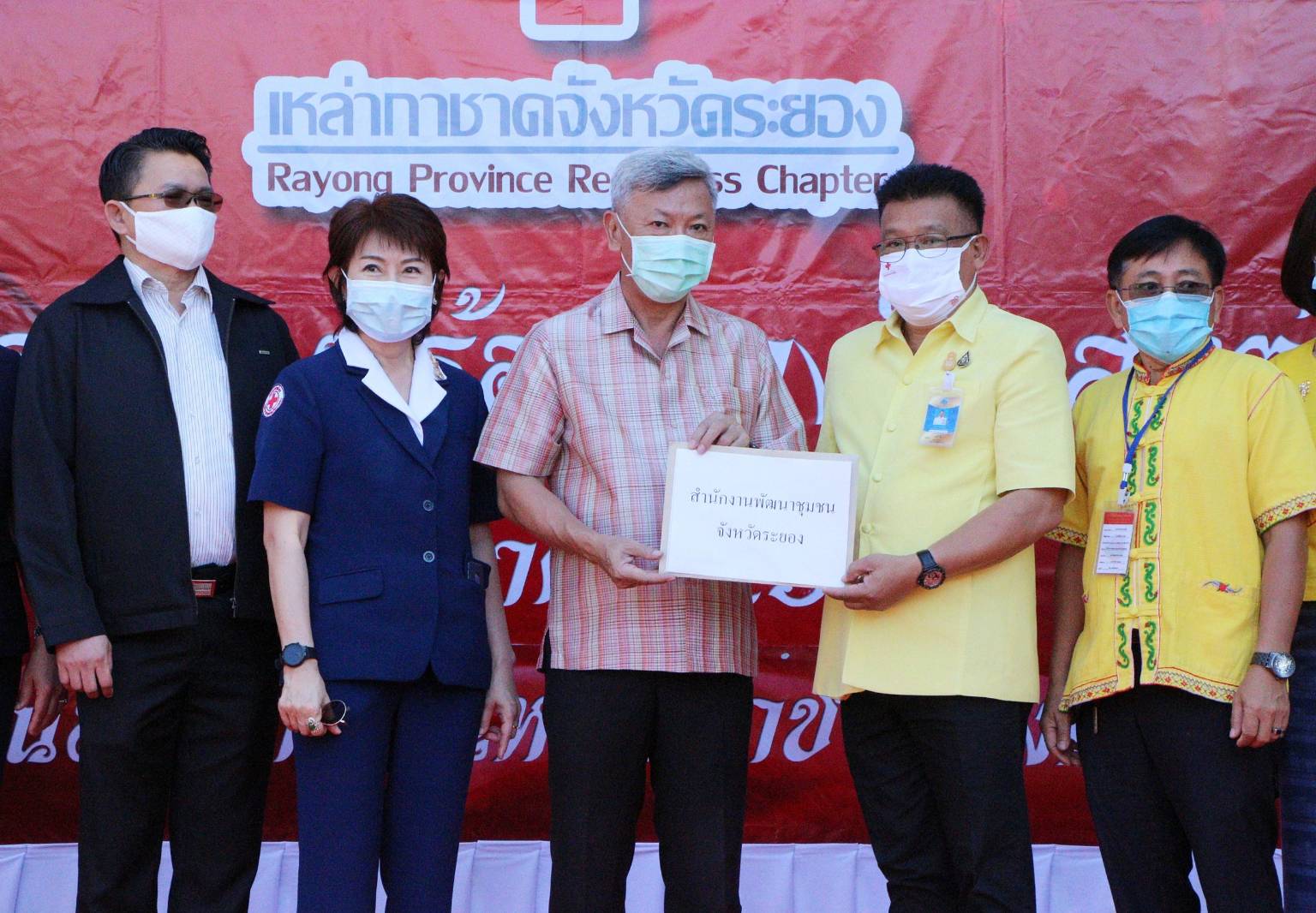 ?ในการนี้ นายพิศ นันทพูนพิพัฒน์ พัฒนาการจังหวัดระยอง พร้อมด้วยผู้อำนวยการกลุ่มงานฯ พัฒนาการอำเภอ คณะกรรมการพัฒนาสตรีจังหวัดระยองและเจ้าหน้าที่พัฒนาชุมชนฯ มอบเงินเพื่อสนับสนุนกิจกรรมเหล่ากาชาดจังหวัดระยอง จำนวน 15,000 บาท ซึ่งจังหวัดระยองกำหนดจัดงานวันสมเด็จพระเจ้าตากสินมหาราชและงานกาชาดจังหวัดระยองประจำปี 2563 ขึ้น ระหว่างวันที่ 28 ธันวาคม 2563 ถึงวันที่ 3 มกราคม 2564 ณ สนามกีฬากลางจังหวัดระยอง ตำบลเนินพระ อำเภอเมืองระยอง จังหวัดระยอง โดยจัดให้มีกิจกรรมการออกร้านกาชาด การแสดงการจัดนิทรรศการของส่วนราชการและกลุ่มโรงงานอุตสาหกรรมในจังหวัดระยอง การแสดงสินค้า OTOP และสินค้าอุตสาหกรรมของภาคเอกชน ซึ่งเป็นส่วนหนึ่งของกิจกรรมหารายได้สำหรับเป็นค่าใช้จ่ายในการดำเนินกิจการสาธารณะกุศลของเหล่ากาชาดจังหวัดระยอง
