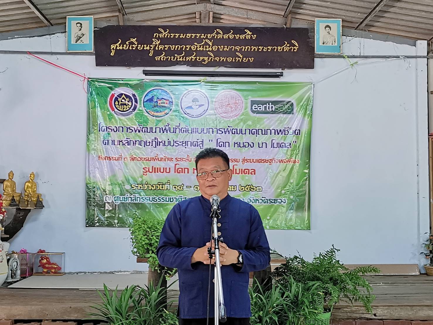 ??? >> นายพิศ นันทพูนพิพัฒน์ พัฒนาการจังหวัดระยอง เป็นประธานในพิธีปิด โครงการพัฒนาพื้นที่ต้นแบบการพัฒนาคุณภาพชีวิตตามหลักทฤษฎีใหม่ ประยุกต์สู่ “โคก หนอง นา โมเดล” กิจกรรมที่ 1 ฝึกอบรมเพิ่มทักษะระยะสั้นการพัฒนากสิกรรมสู่ระบบเศรษฐกิจพอเพียง รูปแบบ โคก หนอง นา โมเดล และมอบประกาศนียบัตรแก่ผู้ผ่านการอบรม จำนวน 50 ราย ประกอบด้วย ตัวแทนครัวเรือนเป้าหมายที่สมัครเข้าร่วมโครงการ จำนวน 22 ราย และผู้ร่วมโครงการจ้างงานสร้างรายได้ จำนวน 28 ราย