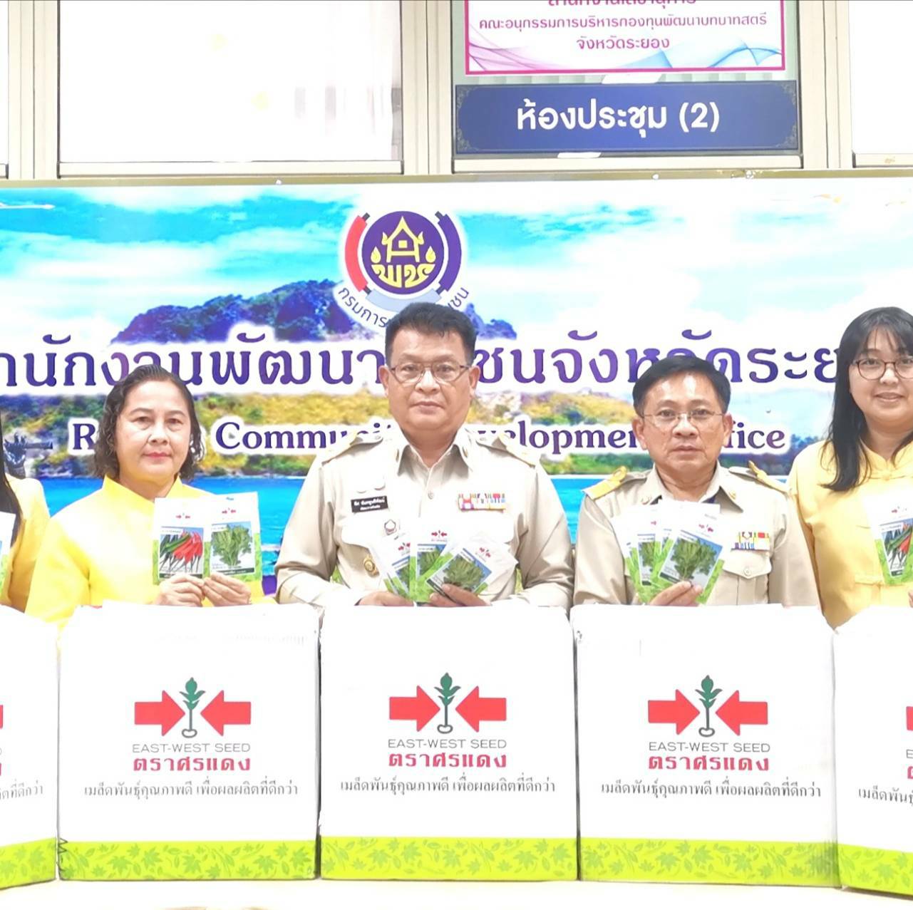?? >> นายพิศ นันทพูนพิพัฒน์ พัฒนาการจังหวัดระยอง ส่งมอบเมล็ดพันธุ์ผักสวนครัว จำนวน 5 ชนิด ได้แก่ กะเพรา คะน้า ผักบุ้ง พริก และแตงกวา จำนวน 4,640 ซอง ให้แก่พัฒนาการอำเภอทั้ง 8 แห่ง (อำเภอเมืองระยอง/แกลง/บ้านค่าย/ปลวกแดง/บ้านฉาง/วังจันทร์/เขาชะเมา/นิคมพัฒนา) โดยมี ผู้อำนวยการกลุ่มงานส่งเสริมการพัฒนาชุมชน และผู้อำนวยการกลุ่มงานยุทธศาสตร์การพัฒนาชุมชน เข้าร่วมการรับมอบดังกล่าว ทั้งนี้ สำนักงานพัฒนาชุมชนจังหวัดได้รับเมล็ดพันธุ์ผักจากกรมการพัฒนาชุมชนที่ได้รับมอบมาจาก บริษัท อีสท์ เวสท์ ซีด จํากัด (ตราศรแดง) เพื่อเป็นการต่อยอดและขยายผลการดำเนินงาน น้อมนำแนวพระราชดำริของสมเด็จสมเด็จพระกนิษฐาธิราชเจ้า กรมสมเด็จพระเทพรัตนราชสุดาฯ สยามบรมราชกุมารี สู่แผนปฏิบัติการ 90 วัน “ปลูกผักสวนครัวเพื่อสร้างความมั่นคงทางอาหาร ครั้งที่ 2 ”