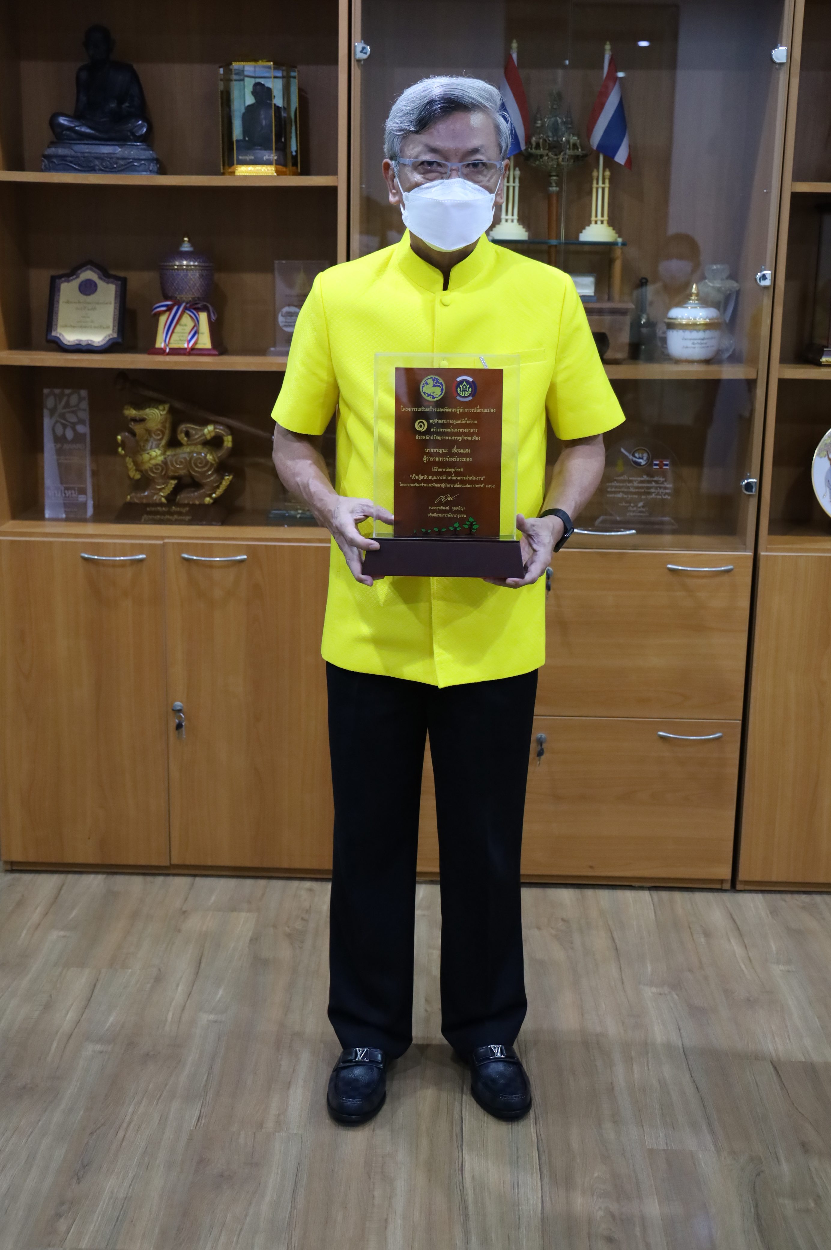 ??วันพุธที่ 22 กันยายน 2564 เวลา 09.00 น. นายชาญนะ เอี่ยมแสง ผู้ว่าราชการจังหวัดระยอง ให้เกียรติรับมอบโล่รางวัลเชิดชูเกียรติและใบประกาศเกียรติบัตร จากกรมการพัฒนาชุมชน ในฐานะผู้สนับสนุนการขับเคลื่อนการดำเนินงานโครงการเสริมสร้างและพัฒนาผู้นำการเปลี่ยนแปลง ประจำปีงบประมาณ พ.ศ. 2564 โดยมีนายพิศ นันทพูนพิพัฒน์ พัฒนาการจังหวัดระยอง เป็นผู้แทนมอบรางวัลดังกล่าว ณ ห้องผู้ว่าราชการจังหวัดระยอง