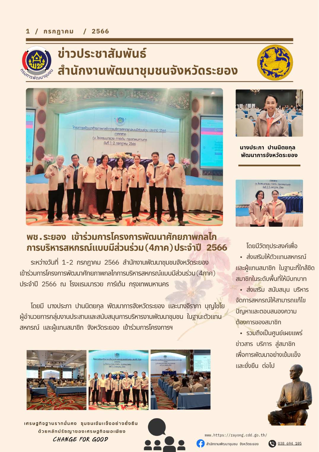?⛳️>> วันเสาร์ที่ 1 กรกฎาคม 2566 เวลา 08.30-17.00 น. ณ โรงแรมมารวย การ์เด้น กรุงเทพมหานคร โดยมีวัตถุประสงค์เพื่อส่งเสริมให้ตัวแทนสหกรณ์ และผู้แทนสมาชิก ในฐานะที่ใกล้ชิดสมาชิกในระดับพื้นที่ให้มีบทบาท ส่งเสริม สนับสนุน บริหารจัดการสหกรณ์ให้สามารถแก้ไขปัญหาและตอบสนองความต้องการของสมาชิก รวมถึงเป็นศูนย์เผยแพร่ข่าวสาร บริการ สู่สมาชิก เพื่อการพัฒนาอย่างเข้มแข็งและยั่งยืน ต่อไป