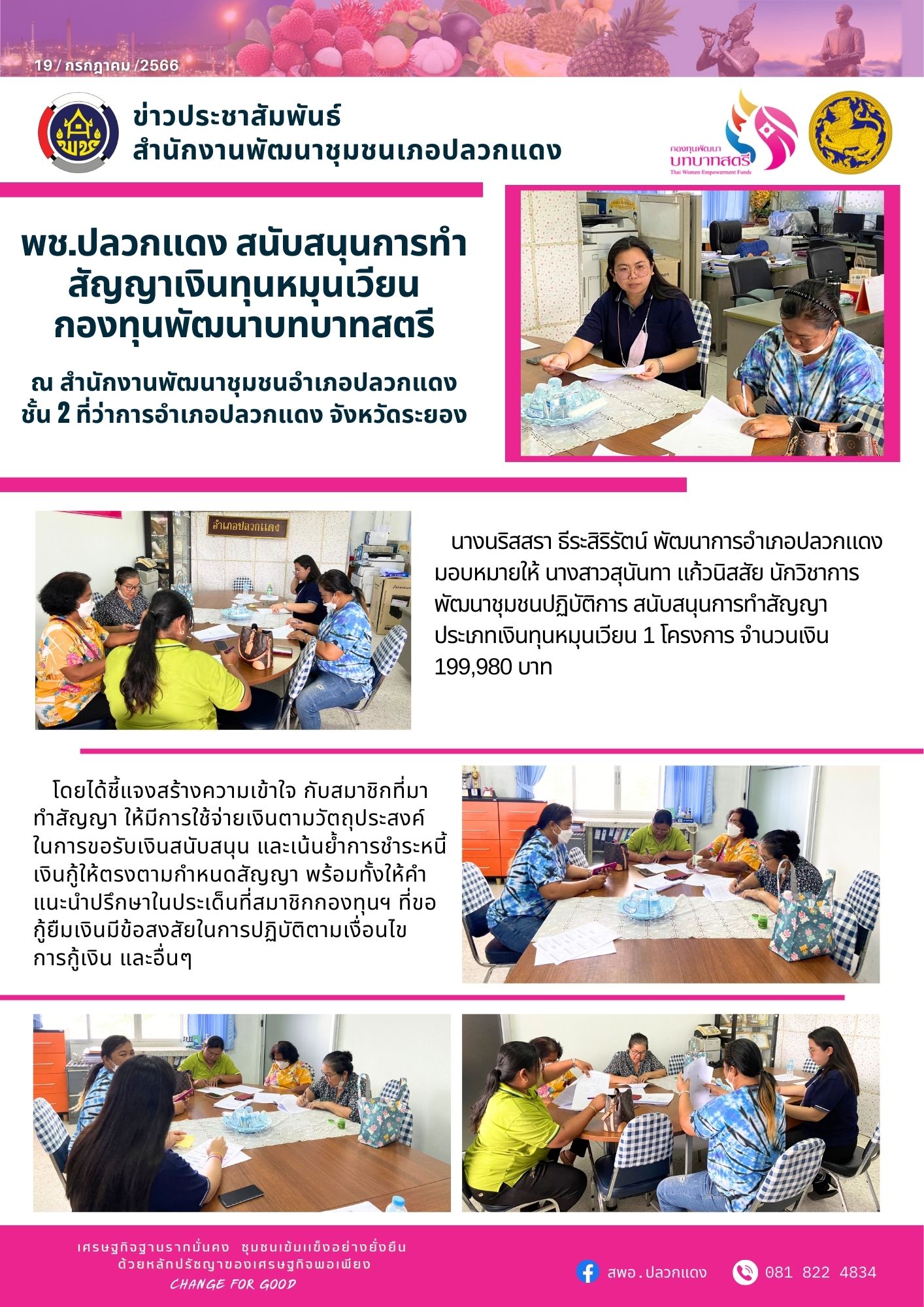 ?พช.ปลวกแดง สนับสนุนการทำสัญญาเงินทุนหมุนเวียนกองทุนพัฒนาบทบาทสตรี ?