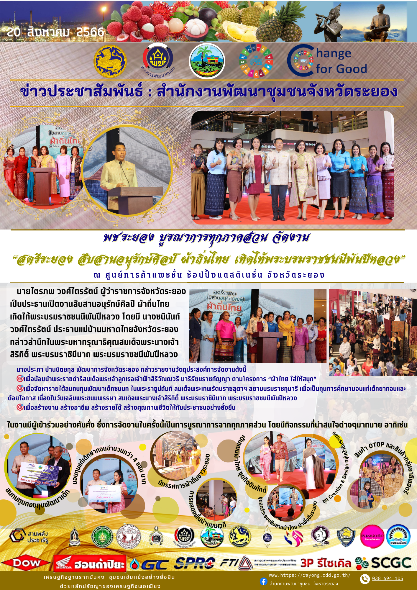? พช.ระยอง บูรณาการทุกภาคส่วน จัดงาน “สตรีระยอง สืบสานอนุรักษ์ศิลป์ ผ้าถิ่นไทย เทิดไท้พระบรมราชชนนีพันปีหลวง”?