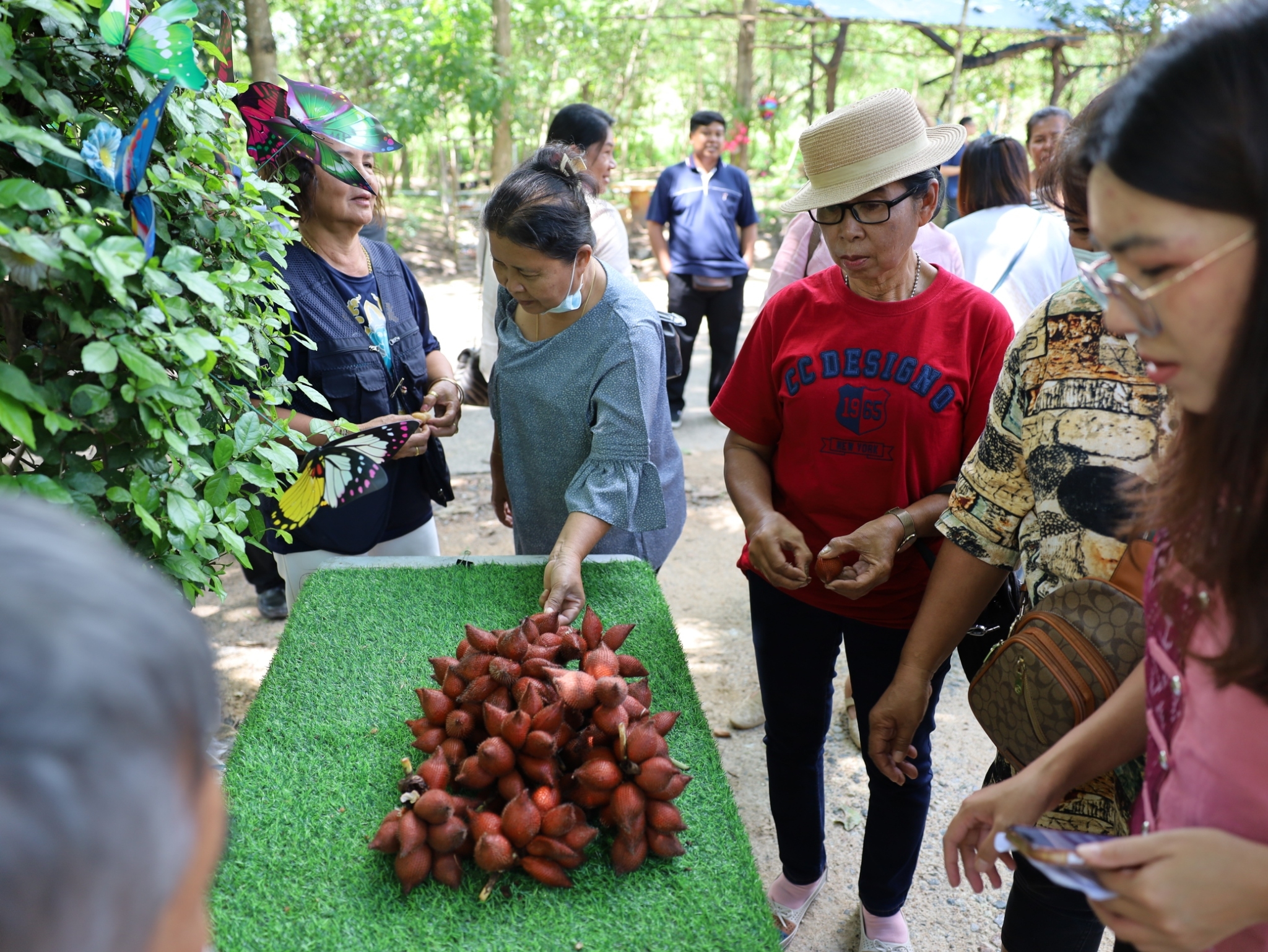 🌸 เยี่ยมชมกิจกรรมเครือข่ายกลุ่มออมทรัพย์เพื่อการผลิตบ้านป่าแดง อาทิเช่น ศูนย์สาธิตการตลาด สถานที่ทำการและสวนสละ(ห้างสูง) ของกลุ่มฯ เพื่อเป็นแนวทางในการพัฒนาของกลุ่มออมทรัพย์เพื่อการผลิตบ้านน้ำโจน