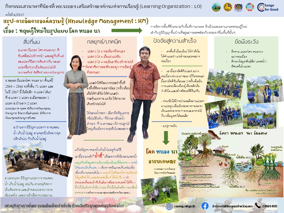 🚩 พช.ระยอง จัดกิจกรรมเสวนาพาทีน้องพี่ พช.ระยอง เสริมสร้างองค์กรแห่งการเรียนรู้ (Learning Organization : LO) (ครั้งที่4/2567) หัวข้อ : ทฤษฎีใหม่ในรูปแบบ “โคก หนอง นา โมเดล” 🌟
