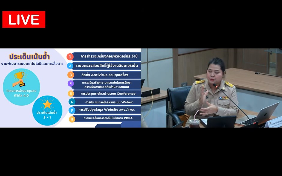 เวลา 09.00 น. ณ ห้องประชุมสำนักงานพัฒนาชุมชนจังหวัดระยอง ศาลากลางจังหวัดระยอง ชั้น 3 ผ่านระบบการประชุมวิดีทัศน์ทางไกล (Video Conference)