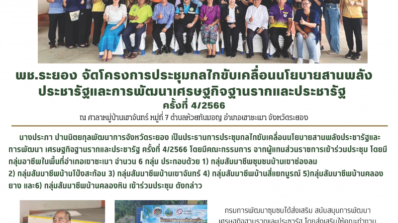 ข่าวประชาสัมพันธ์ พช.ระยอง จัดโครงการประชุมกลไกขับเคลื่อนนโยบายสานพลังประขารัฐฯ 22 กันยายน 2566 / 18:12 น.