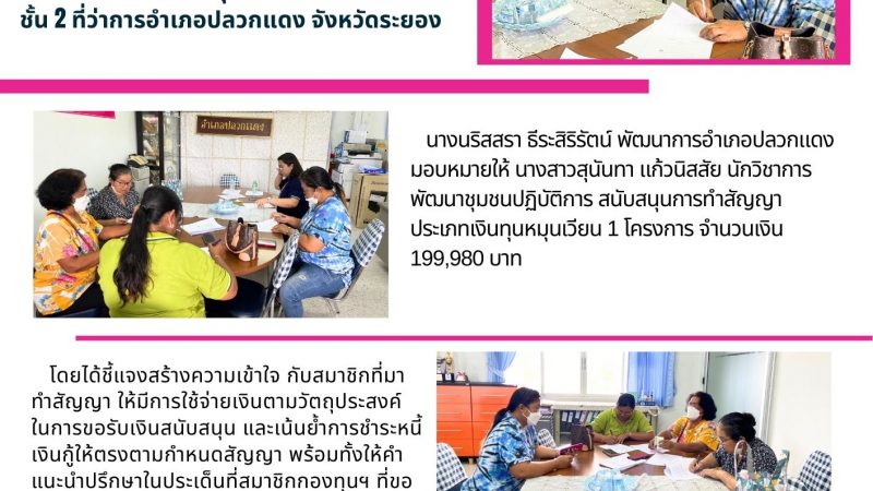 ข่าวประชาสัมพันธ์ พช.ปลวกแดง สนับสนุนการทำสัญญาเงินทุนหมุนเวียนกองทุนพัฒนาบทบาทสตรี 19 กรกฎาคม 2566 / 19:17 น.