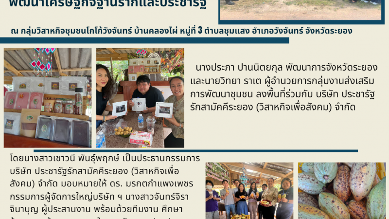 ข่าวประชาสัมพันธ์ พช.ระยอง ร่วมกับ บริษัท ประชารัฐรักสามัคคีระยอง (วิสาหกิจเพื่อสังคม) จำกัด ขับเคลื่อนการดำเนินงานโครงการพัฒนาเศรษฐกิจฐานรากและประชารัฐ 06 กรกฎาคม 2566 / 21:39 น.