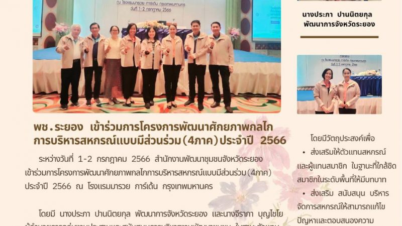 ข่าวประชาสัมพันธ์ ??พช.ระยอง เข้าร่วมการโครงการพัฒนาศักยภาพกลไกการบริหารสหกรณ์แบบมีส่วนร่วม (4ภาค) ประจำปี 2566 ระหว่างวันที่ 1-2 กรกฎาคม 2566 02 กรกฎาคม 2566 / 14:41 น.