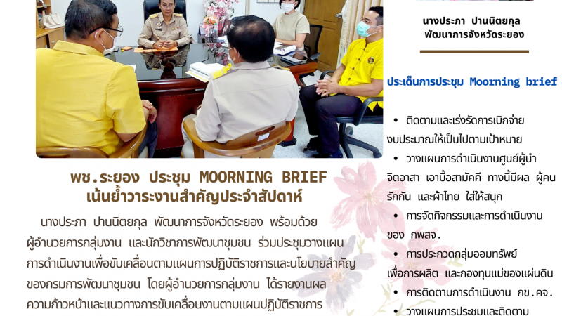 ข่าวประชาสัมพันธ์ ? พช.ระยอง ประชุม Morning brief เน้นย้ำวาระงานสำคัญประจำสัปดาห์ ? 03 กรกฎาคม 2566 / 17:27 น.
