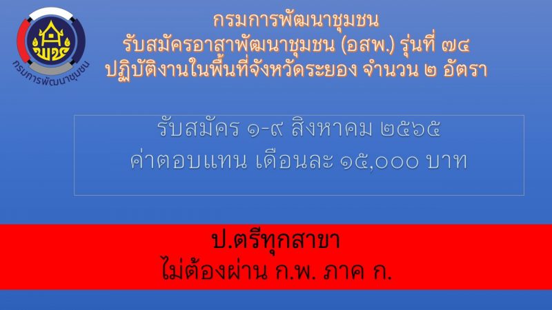 ข่าวประชาสัมพันธ์ กรมการพัฒนาชุมชนรับสมัครสอบแข่งขันเพื่อบรรจุและแต่งตั้งบุคคลเข้ารับราชการเป็นข้าราชการพลเรือนสามัญ 12 มิถุนายน 2565 / 23:04 น.