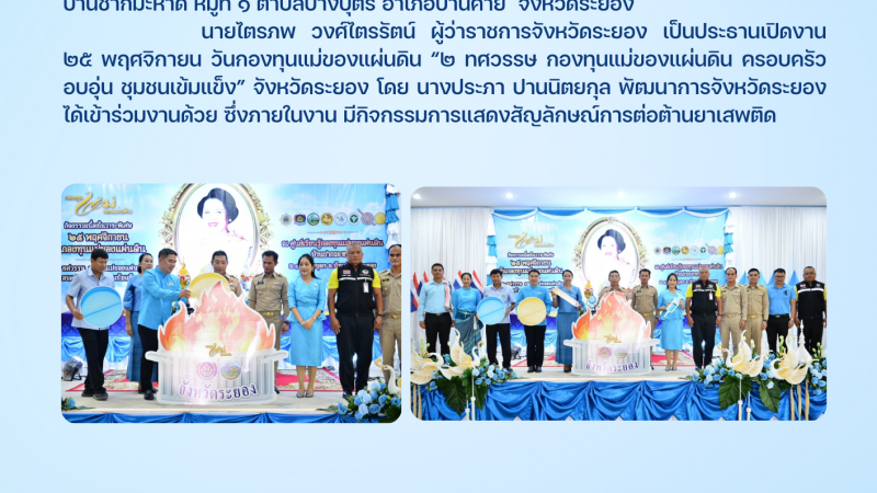 ข่าวประชาสัมพันธ์ จังหวัดระยอง จัดกิจกรรม 25 พฤศจิกายน วันกองทุนแม่ของแผ่นดิน “๒ ทศวรรษ กองทุนแม่ของแผ่นดิน ครอบครัวอบอุ่น ชุมชนเข้มแข็ง” 28 พฤศจิกายน 2567 / 09:45 น.